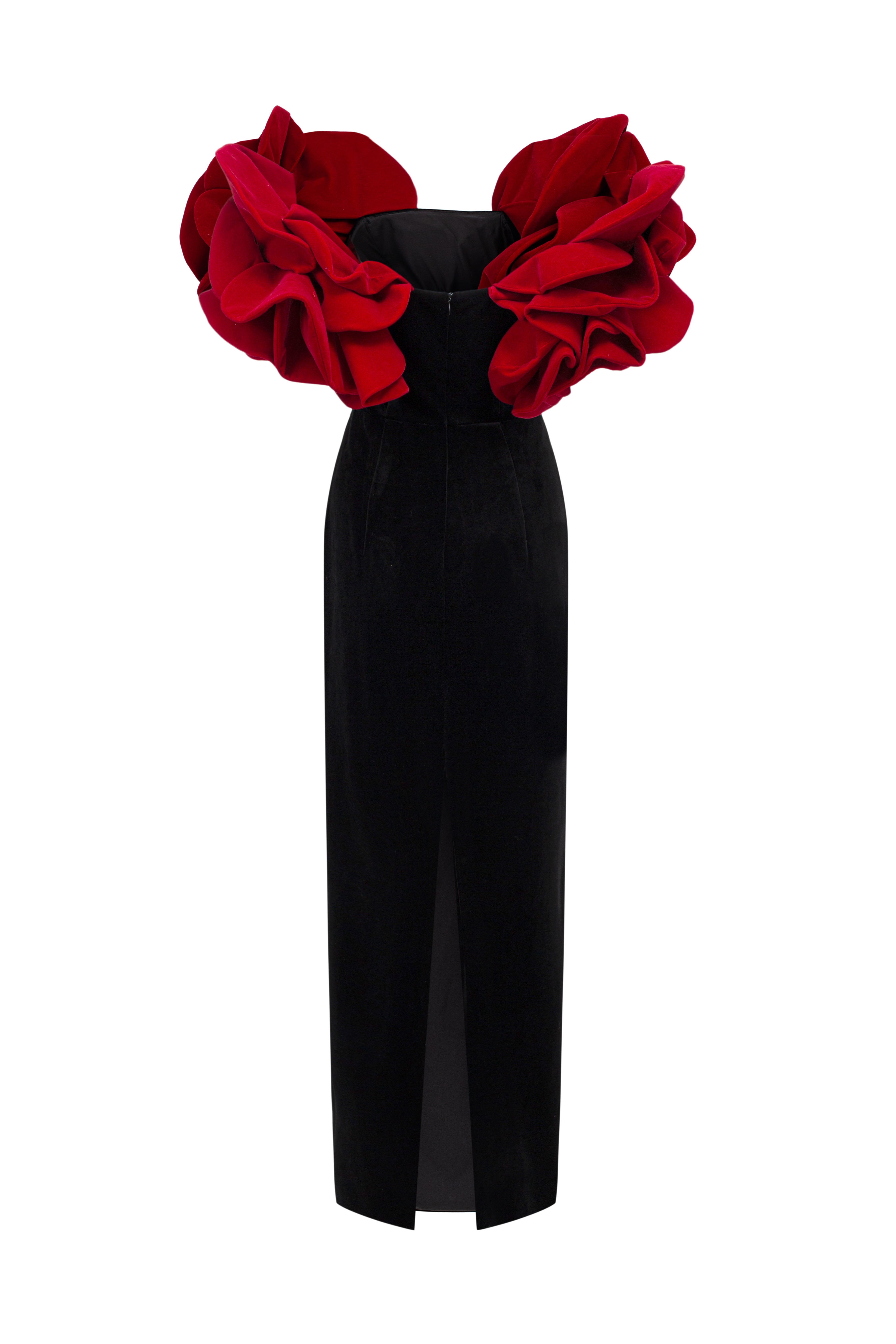 The sheath off-shoulder design creates a sleek and sophisticated silhouette, perfect for any formal occasion. The soft velvet material adds a touch of luxury, while the floor length enhances the elegance of the dress. Make a statement with this must-have piece.