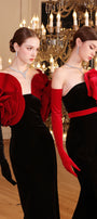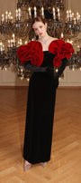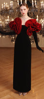 Rose Sheath Off-Shoulder Velvet Floor Length Dress