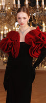 Special Features: Large 3D draped off-shoulder sleeved, Slit back