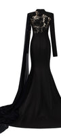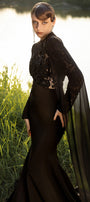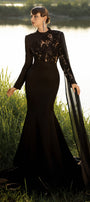 Elevate your evening wear with this expertly crafted mermaid maxi dress. The high neck and regular sleeves complement the gleaming beaded taffeta, offering a sophisticated silhouette. Ideal for galas, formal events, and special celebrations.