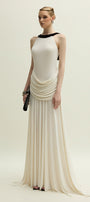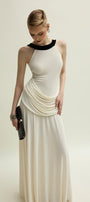 Elevate your style with this sheath maxi dress, featuring a halter neck and elegant draped jersey. Effortlessly sophisticated, it's perfect for evening events, formal gatherings, or stylish summer parties.