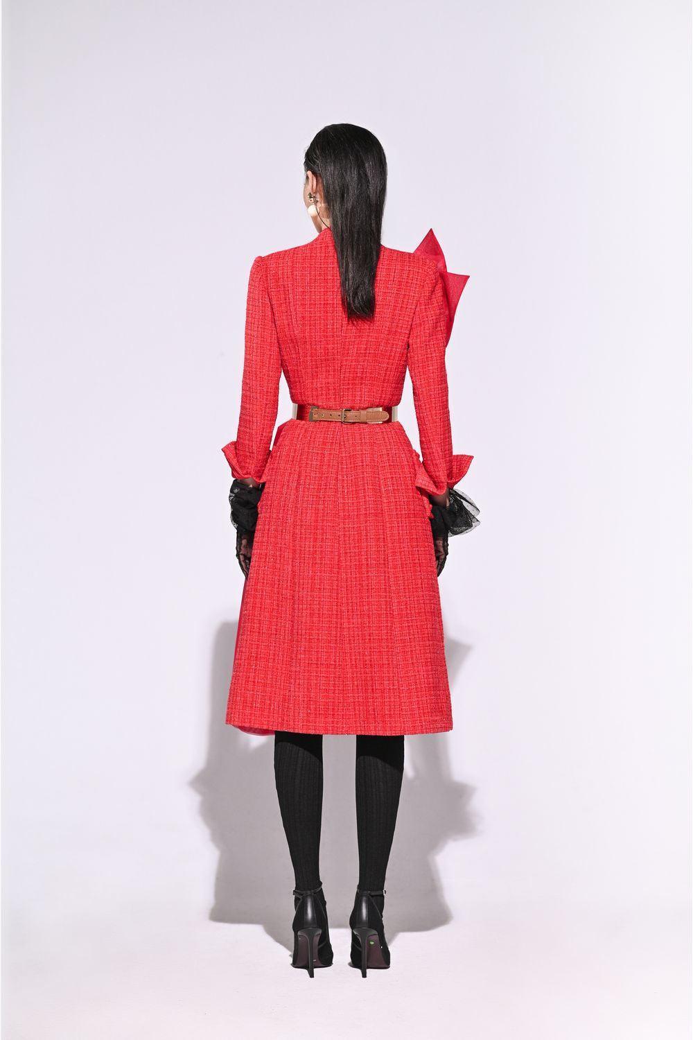 Hirsch A-line Cuff Sleeved Tweed Midi Dress