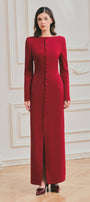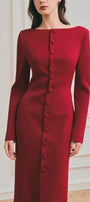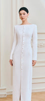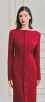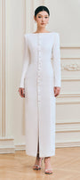 Chloe Sheath Boat Neck Twill Maxi Dress