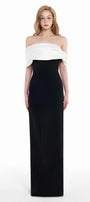 Kelly Sheath Off-Shoulder Twill Floor Length Dress