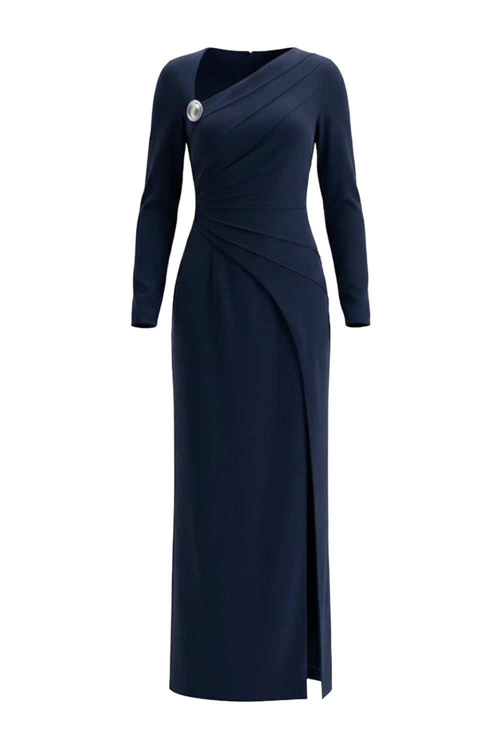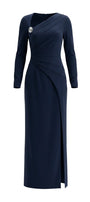 Elevate sophistication with this cotton sheath maxi dress, featuring an asymmetric neckline, draped detailing, and refined metal embellishments. Ideal for evening events, cocktail parties, or upscale gatherings.