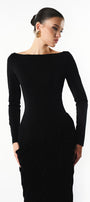 Exude sophistication in this expertly tailored cotton maxi dress. Its sheath silhouette is complemented by a classic boat neck and elegant gathering details at the sleeves. Perfect for weddings, garden parties, or upscale evening events.