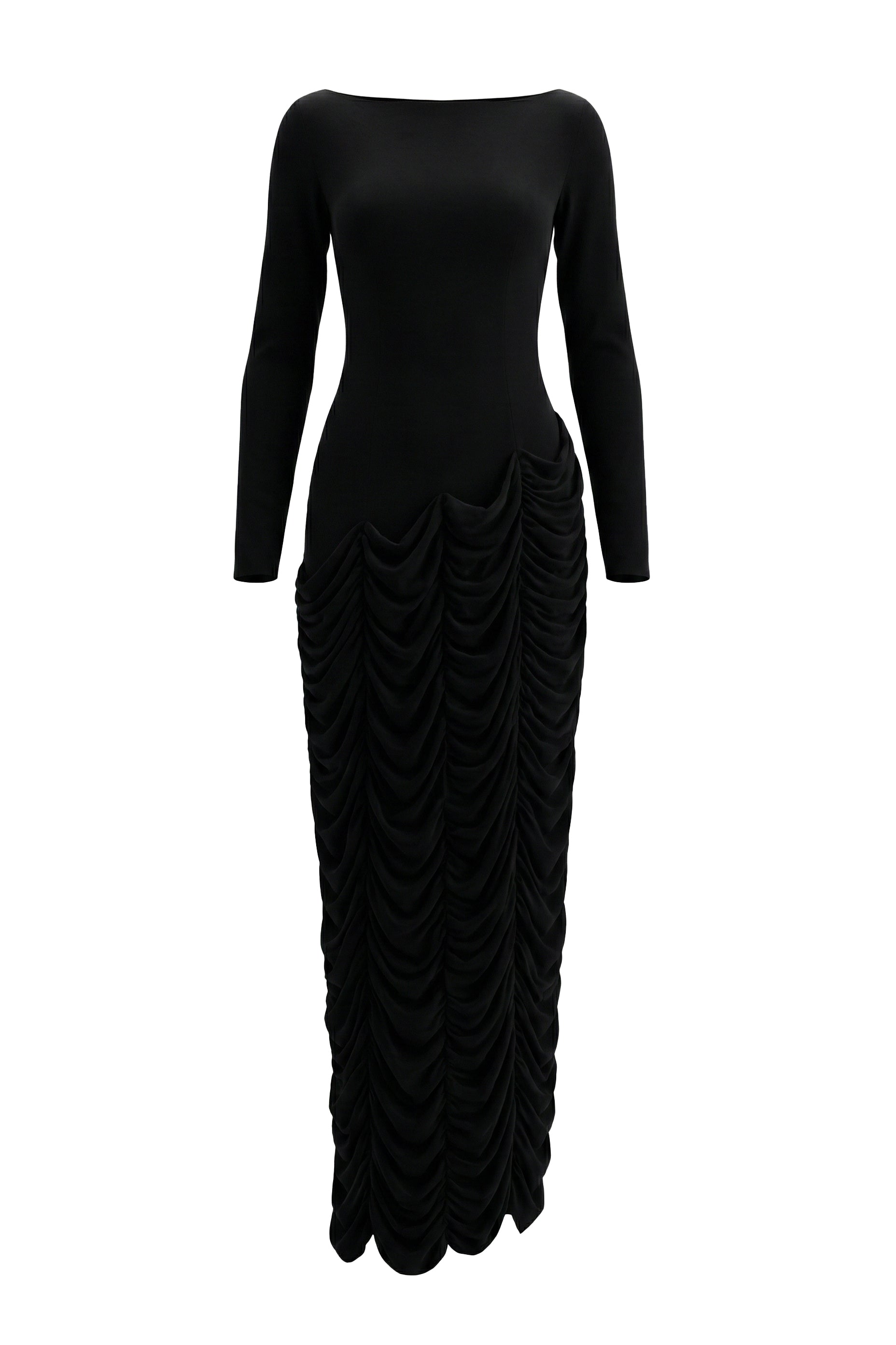 Zera Boat Neck Gathering Maxi Dress