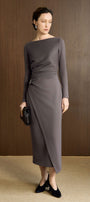 Special Features: Draping at the waist , Asymmetrical wrap skirt design