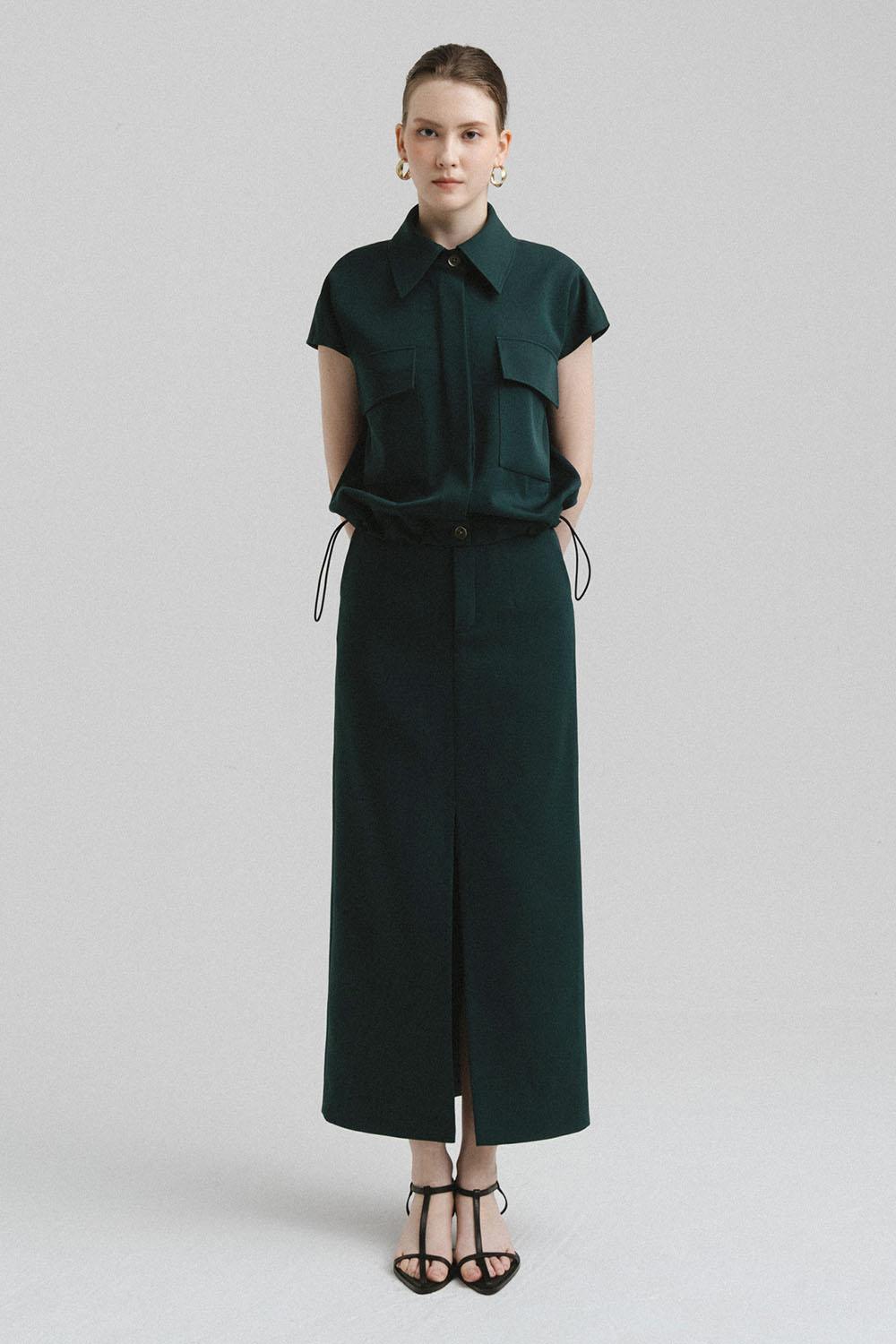 Special Features: Gathered string stopper at the hem, Across back seam, Large flap pocket on the chest