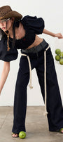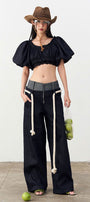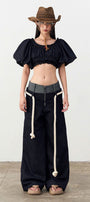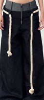 Senna Drop Waist Front Zipper Denim Floor Length Pants