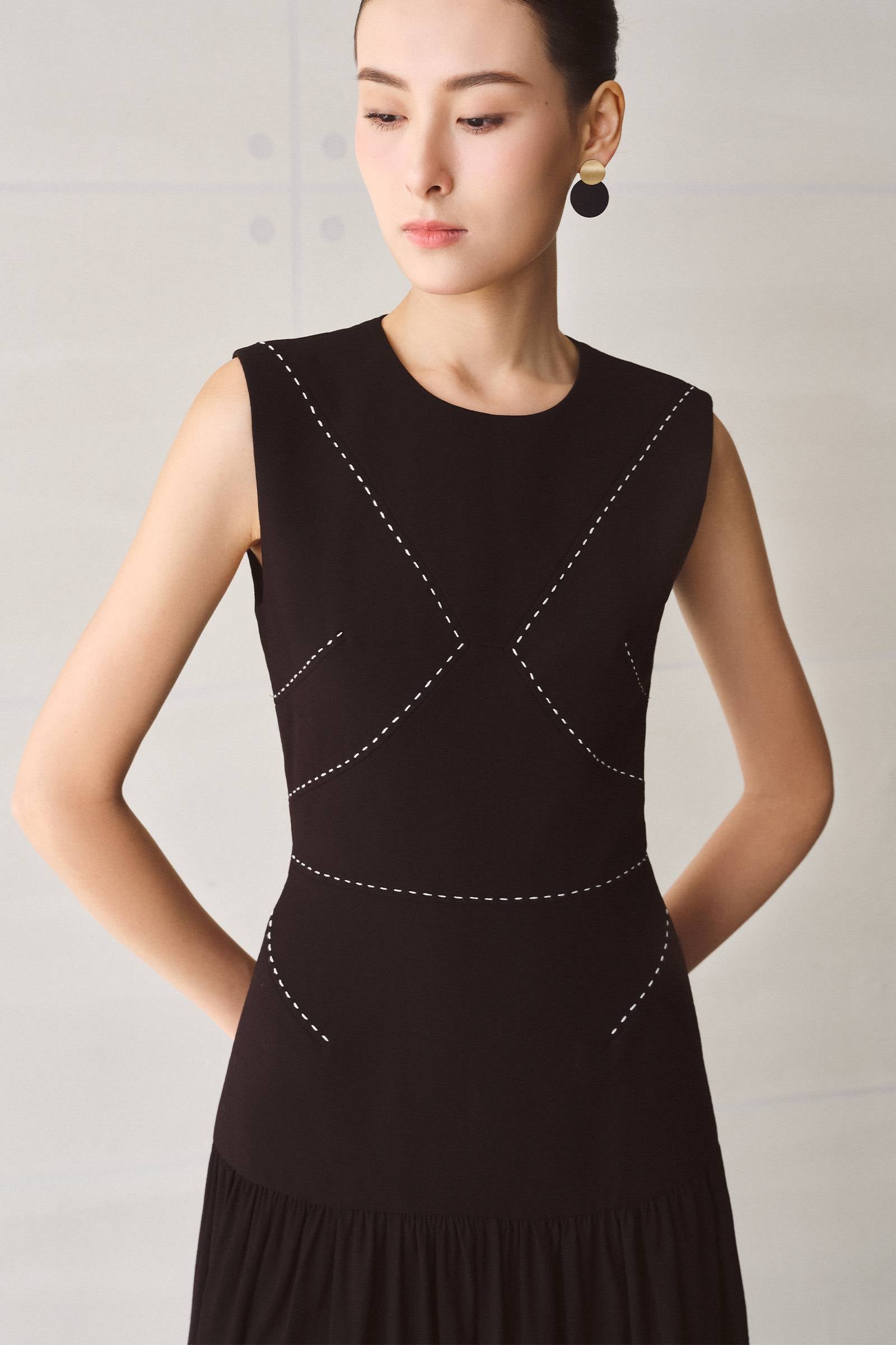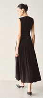 This expertly crafted A-line midi dress features a classic round neck and artful gathering, cut from breathable rayon for comfort and movement. Ideal for work, brunches, or casual events, it offers versatile elegance for any occasion.