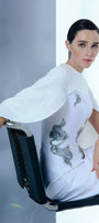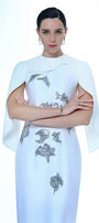 Special Features: Hand-painted and sequin embroidered motif, Curved hem of cape sleeve, Back slit, Cut-out at the back