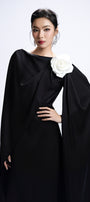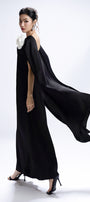 Expertly crafted from synthetic silk, this straight-silhouette maxi dress features a refined boat neck and elegant cape sleeves. Applique detailing adds a touch of sophistication. Perfect for formal events, evening parties, or refined gatherings.