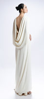Elevate your wardrobe with this expert-crafted wool maxi dress featuring an A-line silhouette, elegant round neck, dramatic cape sleeves, and refined draped detailing. The hand-applied bead embellishments add a touch of sophistication. Perfect for evening galas, formal events, or winter celebrations.