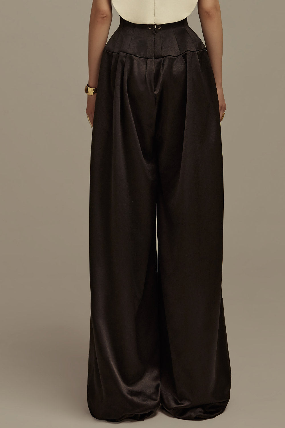 Aether Straight Wide Leg Satin Floor Length Trousers