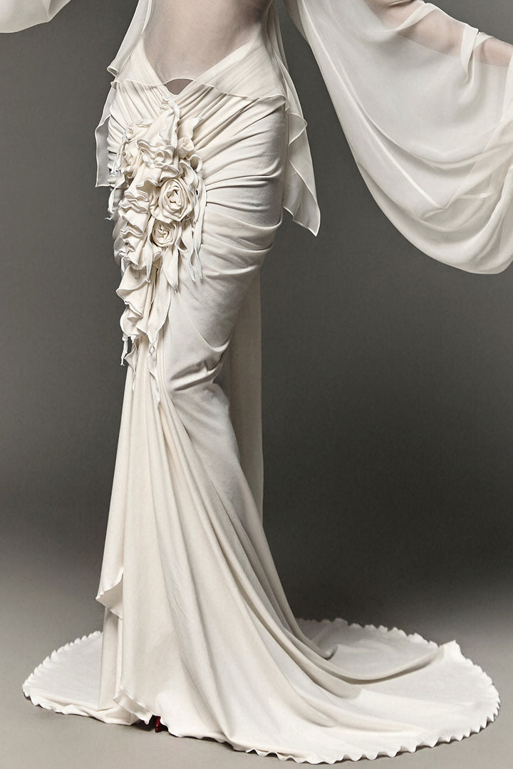 Allegra Mermaid Flower Applique Spandex Floor Length Skirt