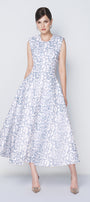 Azure Dream Fit and Flare Sleeveless Taffeta Midi Dress
