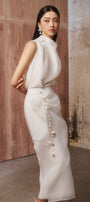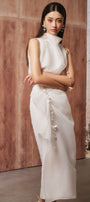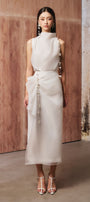Bone Straight Layered Organza Midi Skirt