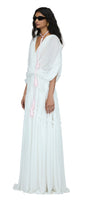 Elevate your wardrobe with this A-line maxi dress, featuring a sophisticated V-neck, dramatic batwing sleeves, and expert ruched and draped detailing for a refined silhouette. Ideal for weddings, evening events, or elegant parties.