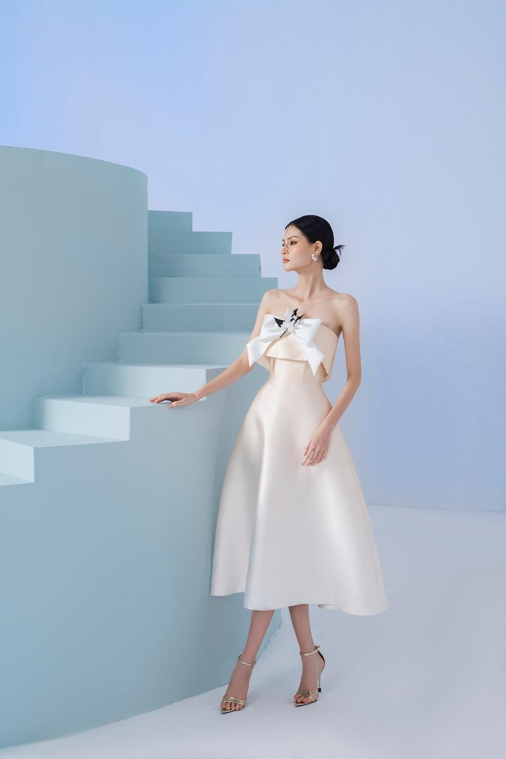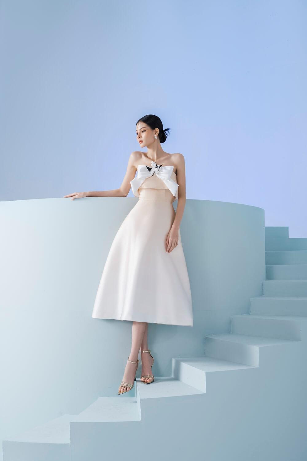 After years, an off-shoulder is still one of the most attractive designs, it makes the Celina dress become a great choice for every sweet and modern girl. The highlight of the dress is the large size bowtie, which helped to enhance the softness and feminity of the dress.