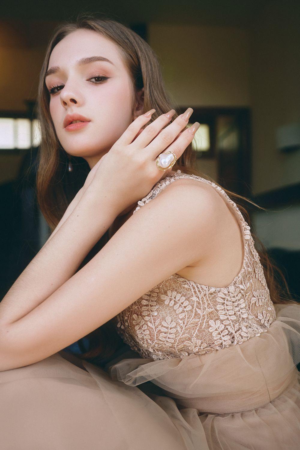 Special Features: Leaf lace pattern on the bodice, Ruffle layers skirt, Empire waistline with ruffle hem, Back zipper