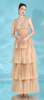 Charles Layered V-Neck Tulle Floor Length Dress