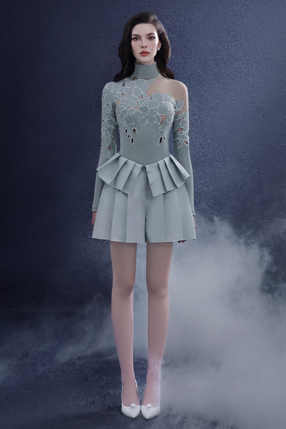 Elevate your wardrobe with our shorts. Made with luxurious taffeta fabric and adorned with delicate pleats and buttons, these shorts are a timeless addition to any ensemble. Perfect for a sophisticated and elegant look that will turn heads and make you feel like a work of art.