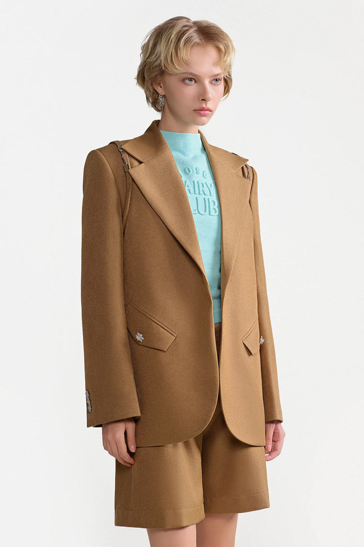 These shorts feature a straight fit with a front zipper and a below-the-knee length. Made with a touch of cinnamon, these shorts offer a classic and versatile look for any occasion. Perfect for a polished and comfortable summer outfit.