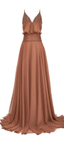 Elevate your style with this expert-designed A-line maxi dress, featuring a sophisticated V-neck, elegant draped details, and refined beaded embellishments. Perfect for weddings, evening events, or upscale gatherings.