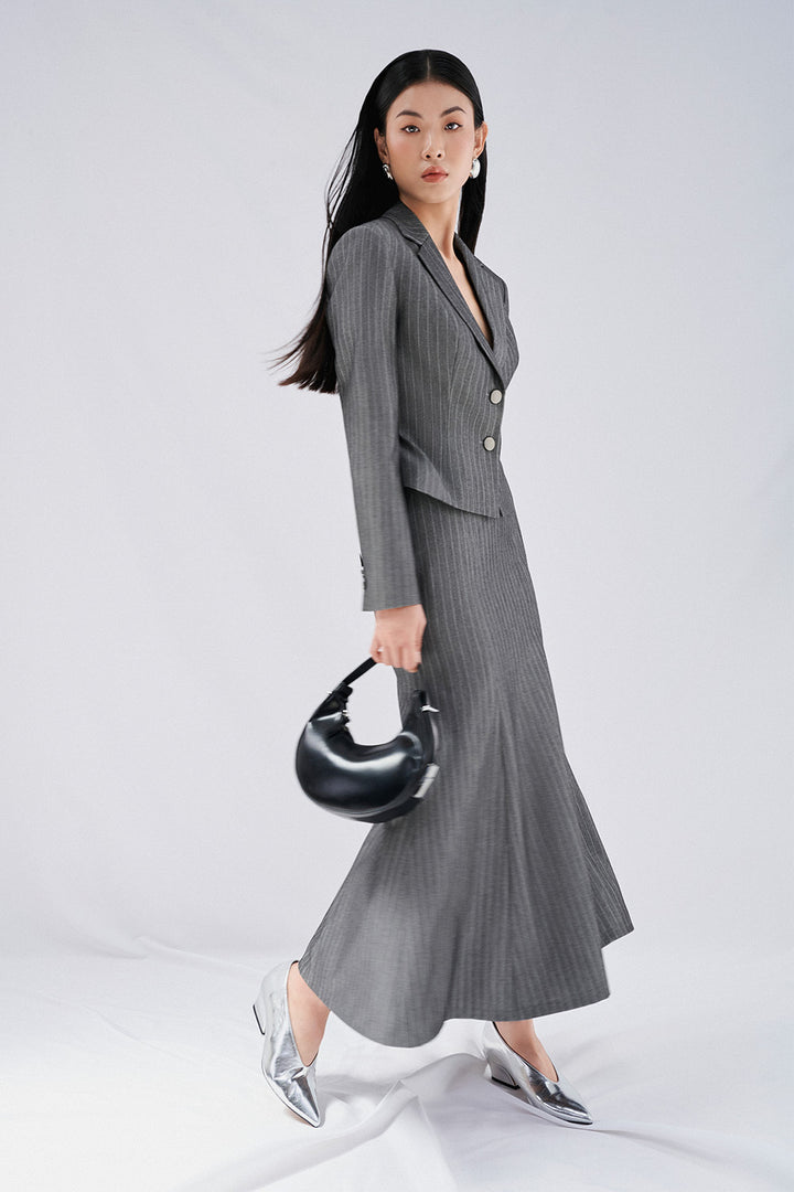 This sophisticated blazer combines a tailored sheath silhouette with distinctive square shoulders for a commanding presence. Crafted from a premium wool blend that ensures structure while maintaining comfort, the architectural lines create a refined silhouette. The meticulous construction features precise seaming and a balanced proportion that transitions seamlessly from boardroom to evening engagements.