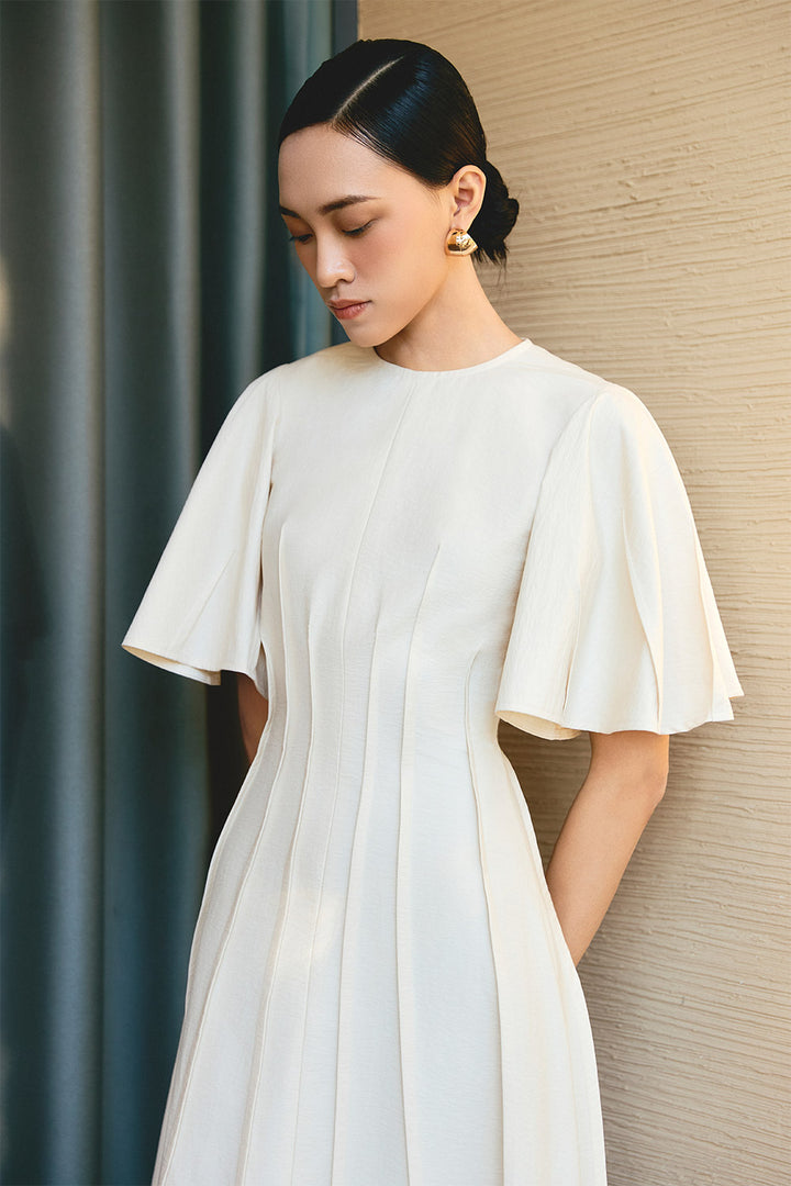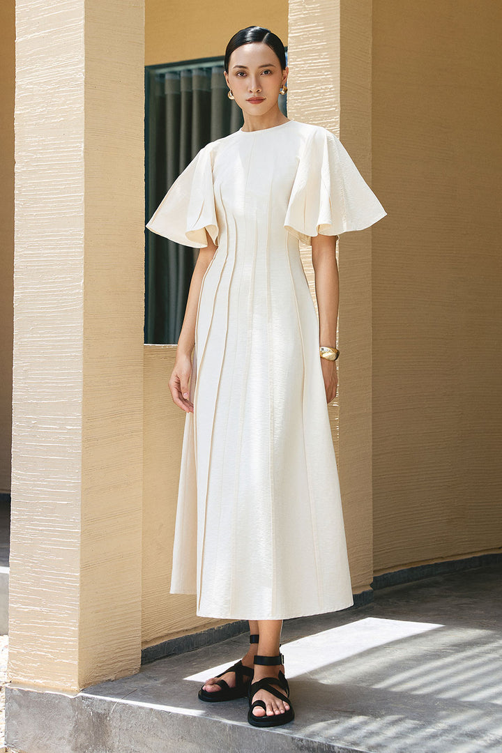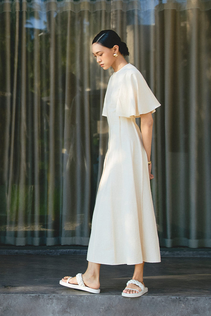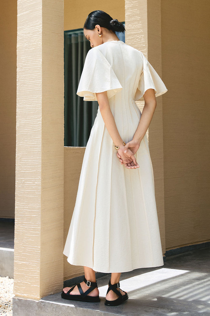 Finley A-line Bell Sleeved Woven Cotton Midi Dress
