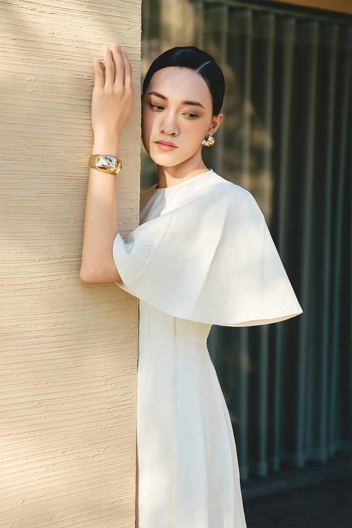 Achieve effortless elegance with the dress. Its A-line silhouette creates a flattering shape, while the bell sleeves add a touch of sophistication. Made with a blend of wool and cotton, this dress is both comfortable and stylish.