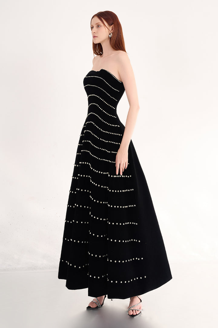The dress offers a refined silhouette with its classic A-line shape and straight-across neckline. Crafted from durable polyester, this dress provides a flattering fit that gently skims the body while allowing ease of movement. Its clean neckline emphasizes simplicity and elegance, making it suitable for a variety of formal occasions. Expertly designed, the Greta dress balances timeless style with modern sophistication for a polished look.