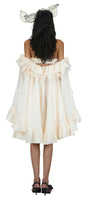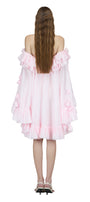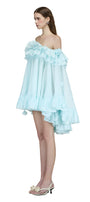 Elevate your style with this off-shoulder babydoll mini dress, featuring romantic bell sleeves, delicate applique, and playful ruffle embellishments. Perfect for garden parties, brunches, or any event where effortless elegance is desired.