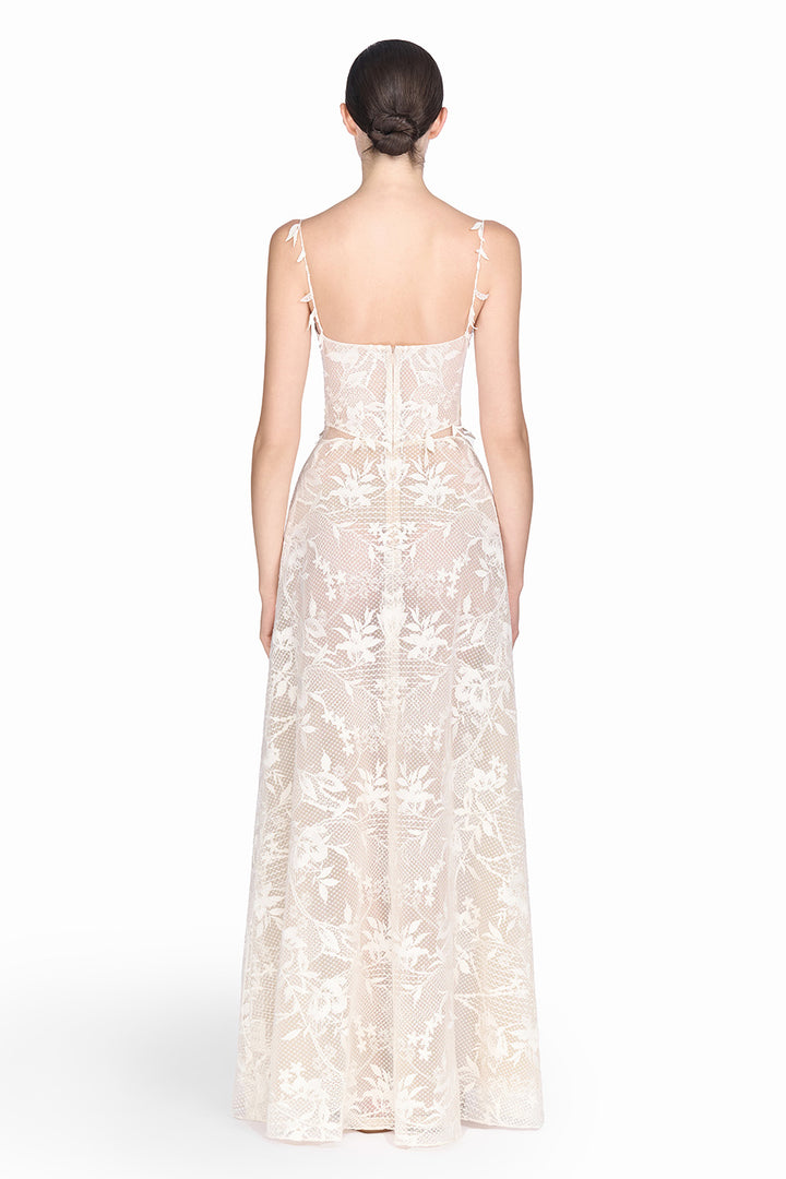 The dress is the perfect choice for any formal occasion. The A-line design flatters all body types, while the Plunge Neck adds a touch of sophistication. Expertly crafted with delicate lace, this dress exudes elegance and timeless beauty.