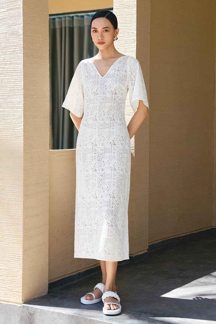 Khaleesi Sheath V-Neck Cotton Lace Midi Dress