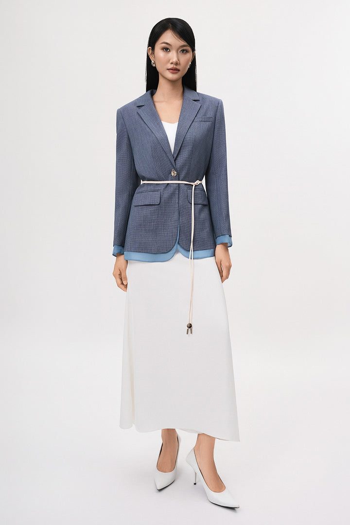 | Special Features | Two-layer, Jetted pocket on the left side, Single-breasted with silver button, Square shoulder, V-neck with notch lapels |