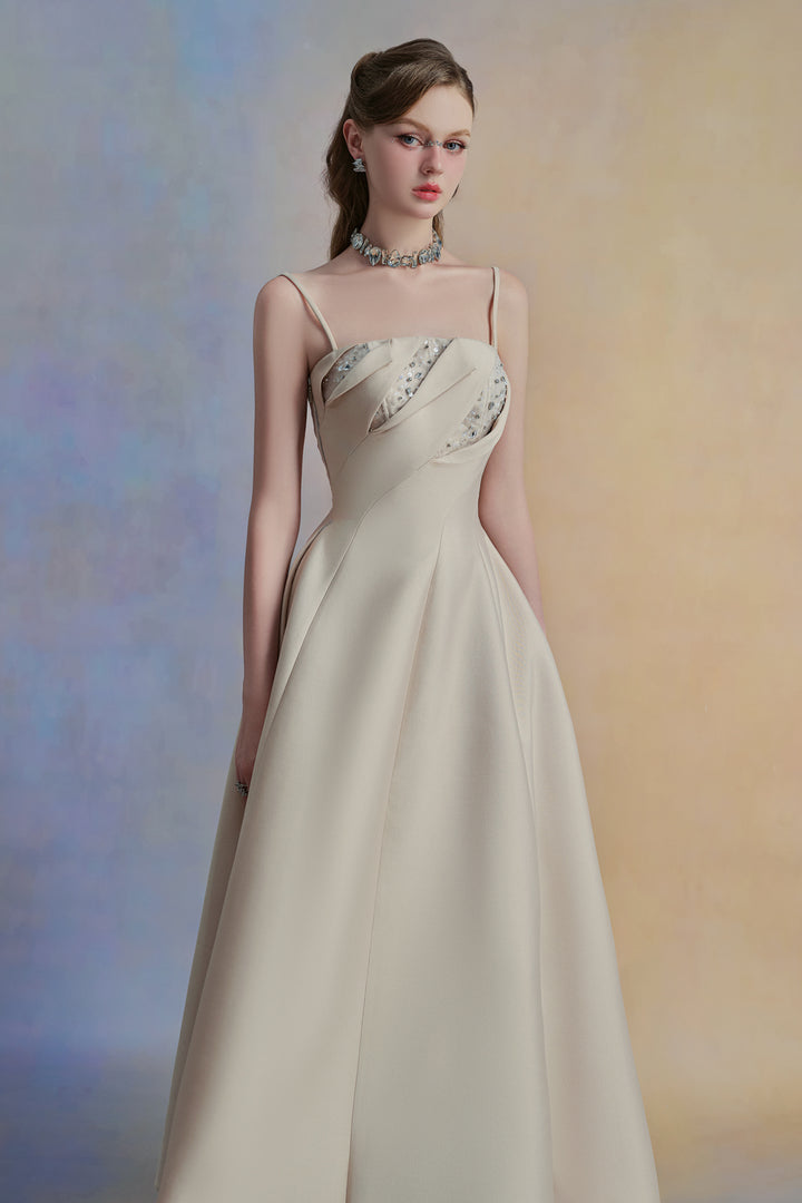 Luceris A-line Spaghetti Strap Taffeta Midi Dress