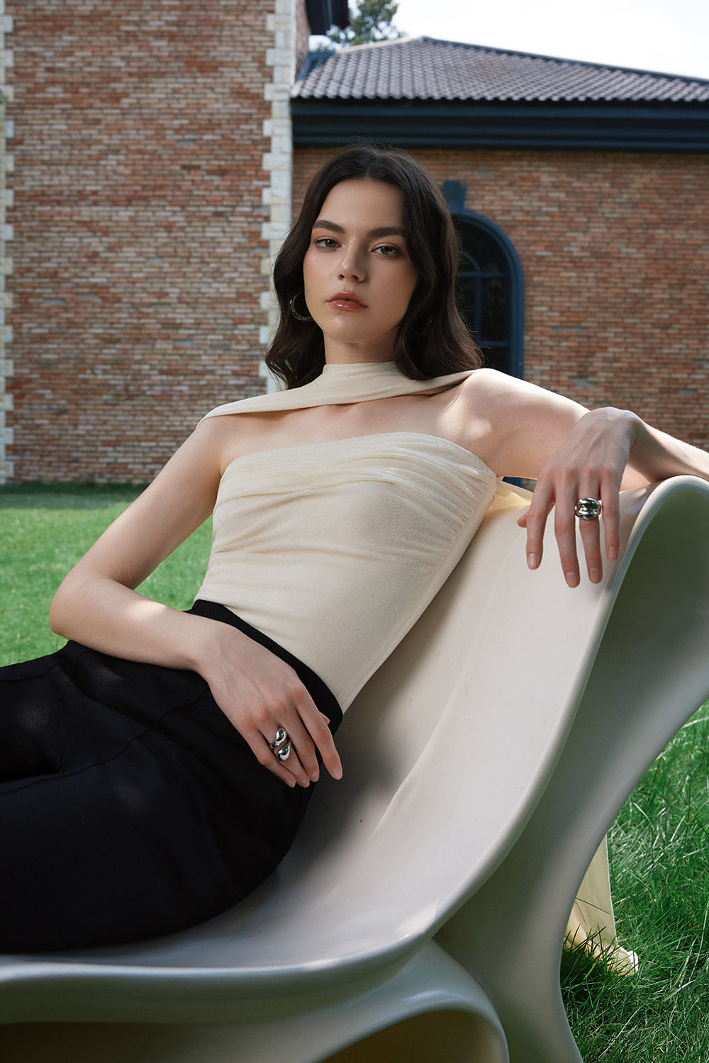 This expertly crafted bodycon top features distinctive cape shoulders for a sophisticated silhouette. Made from a premium cotton-spandex blend, the design offers both structure and stretch, ensuring a flattering fit that moves with your body while maintaining its shape throughout the day. Perfect for elevating both professional and evening ensembles.