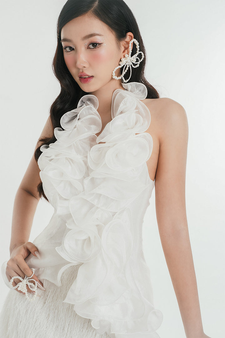 Expertly crafted from high-quality crepe fabric, the top boasts an elegant and modern design. The unique asymmetric halter neck adds a stylish touch, making it perfect for both formal and casual occasions. Elevate your wardrobe with this versatile and sophisticated piece.