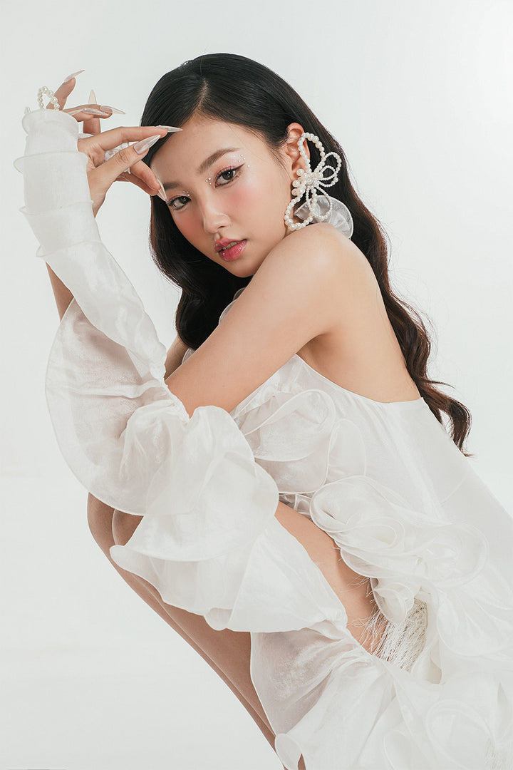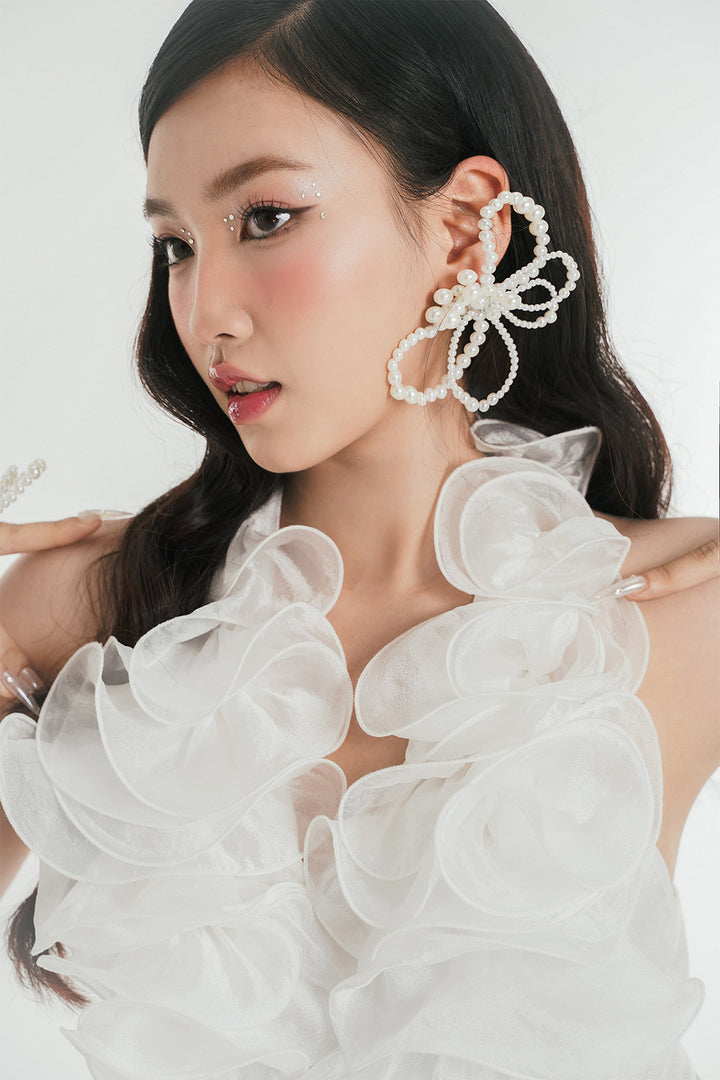 Special Features Asymmetric ruffle trimming, Ruffle extra long flap on the side