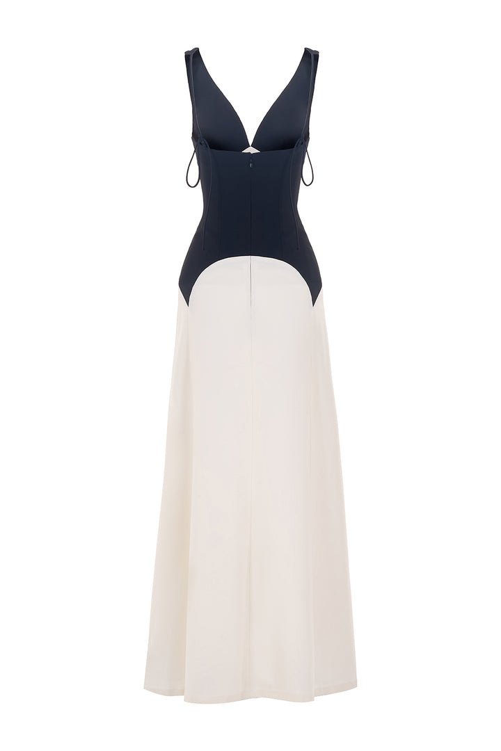 Special Features Gathered chest, Two-color contrast, Flared bottom, Adjustable straps at the back