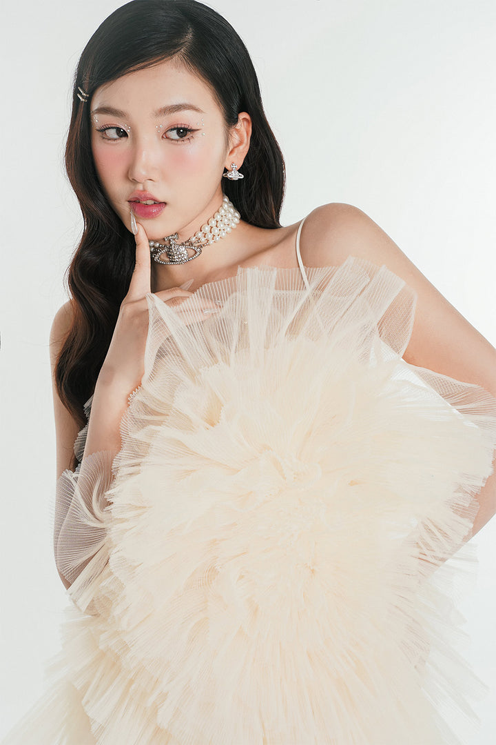 | Special Features | Ruffle layer design, Draped tremendous floral on the bodies |