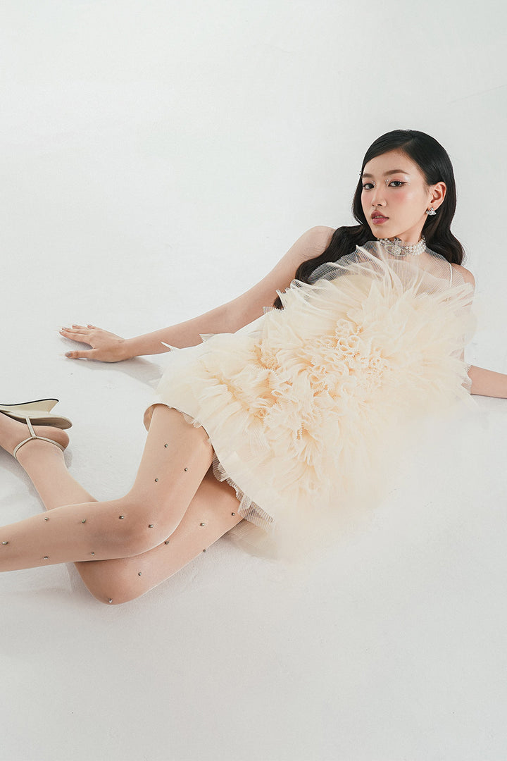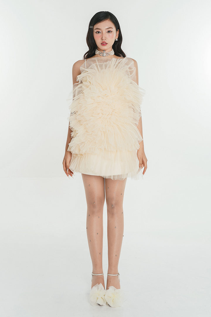 Elevate your style with the dress. This dress features a straight ruffle layer that adds elegant movement and texture to your look. Crafted with high-quality Messaline fabric, it offers a luxurious feel and flawless fit. Perfect for any occasion, from a night out to a special event.
