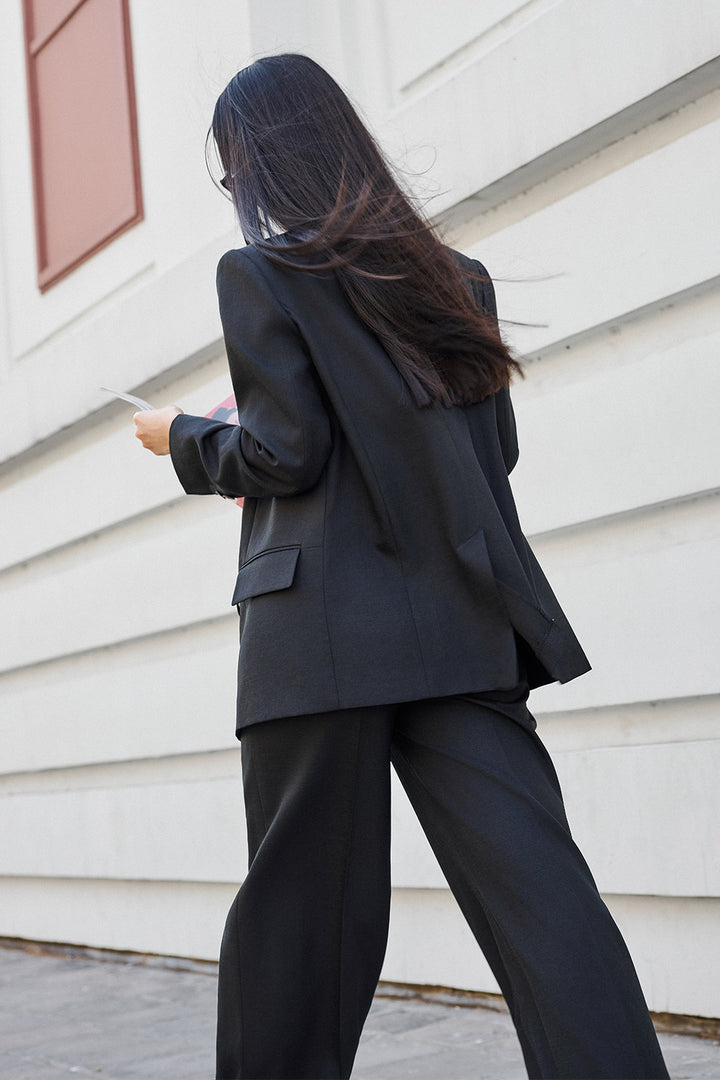 | Special Features | Double-breasted with matching color button, V-neck with peak lapel, Split cuffs with button line, Welt pocket on the left side, Waist dart |