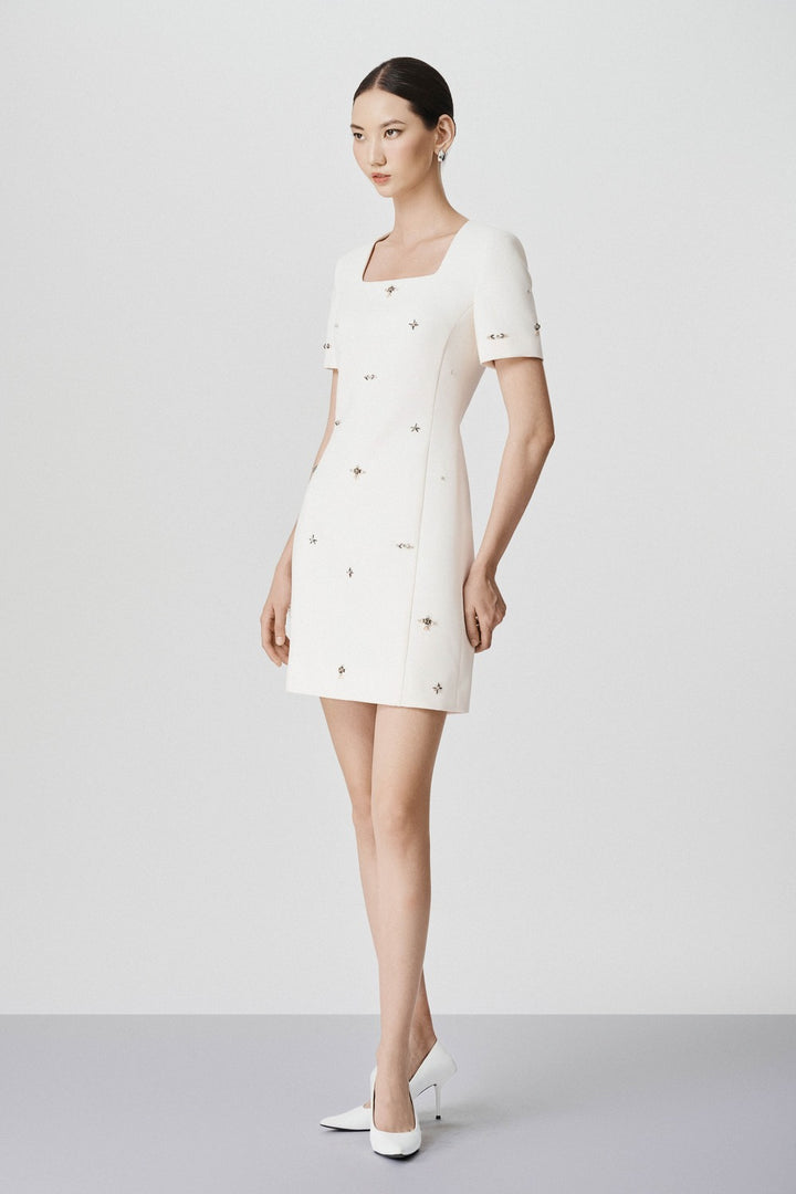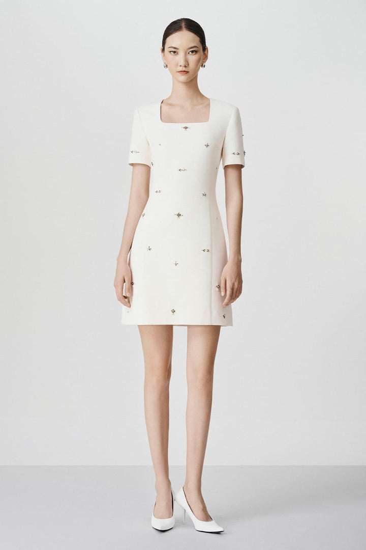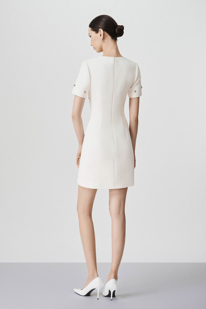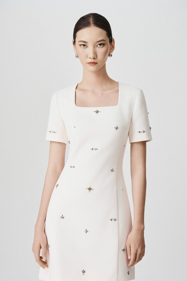 Expertly crafted, our dress features a flattering a-line silhouette and intricate bead detailing. Enjoy the timeless elegance of this dress, perfect for any occasion. Made with high-quality wool for a luxurious and comfortable fit.
