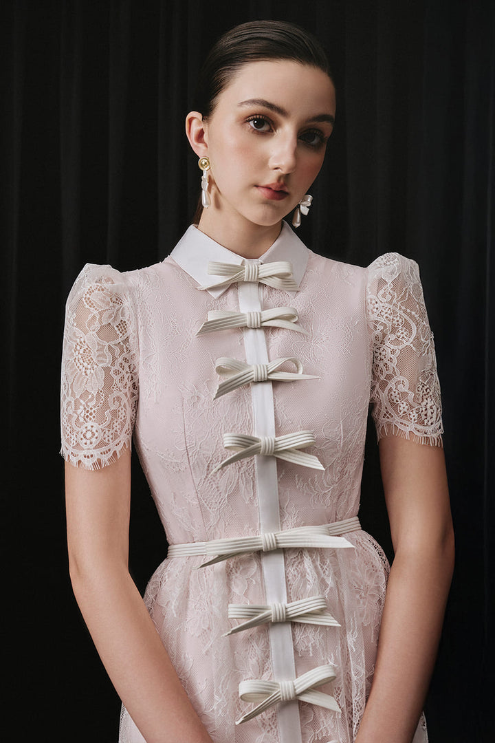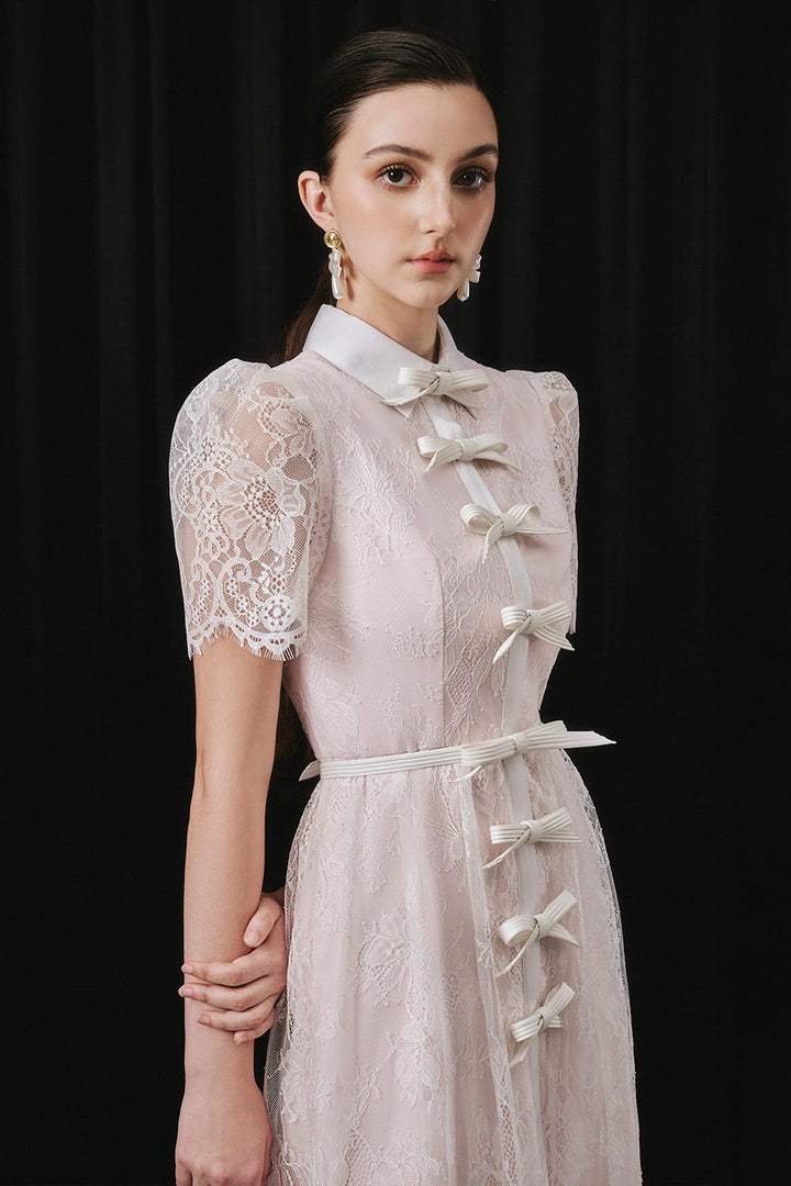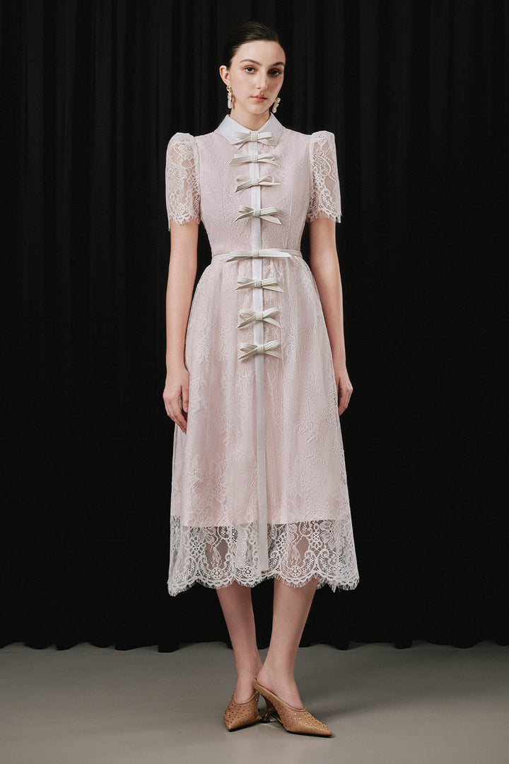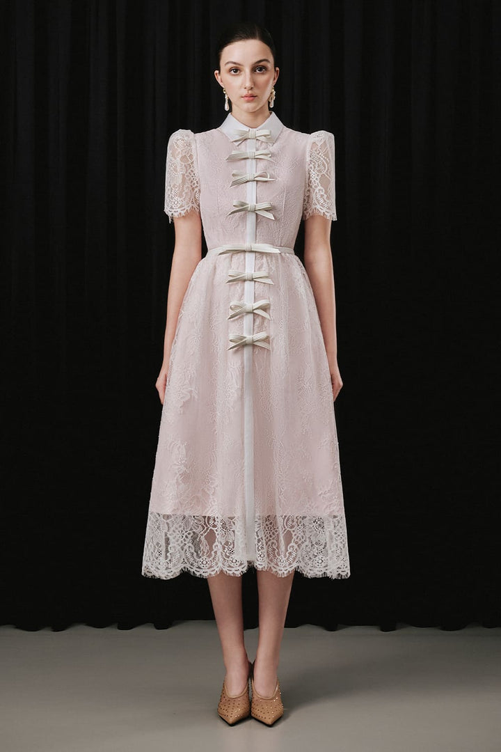 Vivien A-line Collared Neck Lace Midi Dress