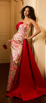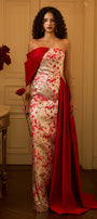Ximena Strapless Asymmetric Jacquard Floor Length Dress