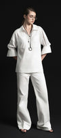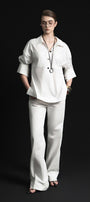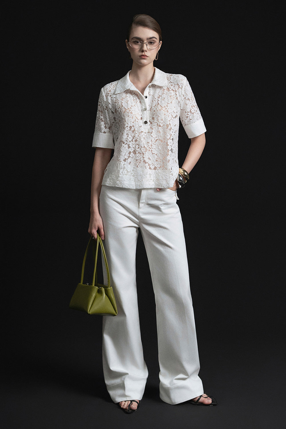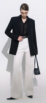 The pants feature a high waist and straight, slightly flared legs that create a flattering silhouette. Designed for a floor-length fit, they offer a modern yet timeless style ideal for elevating your denim collection with expert tailoring and comfort.