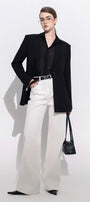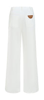 Special Features: Slightly flared at the bottom, Stitching lines, High waist with button and belt loops, Patch pockets at the back with leather logo